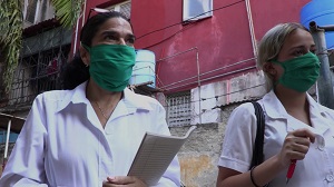 キューバでは新型コロナウイルス流行とたたかうため、2万8千人の医学生が街に出て個別訪問検診を行います。ある医学生は「この戦いに、きっと勝てる」と信じています。街の人たちもマスクを作ったり、自分のできることで協力しあっています。